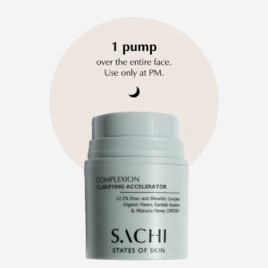 Sachi Skin Complexion Clarifying Accelerator is a multi-molecular exfoliating serum that visibly refines skin texture, evens skin tone, minimizes appearance of pores, smooths fine lines, and lifts discolorations for vibrantly radiant, clearer skin.